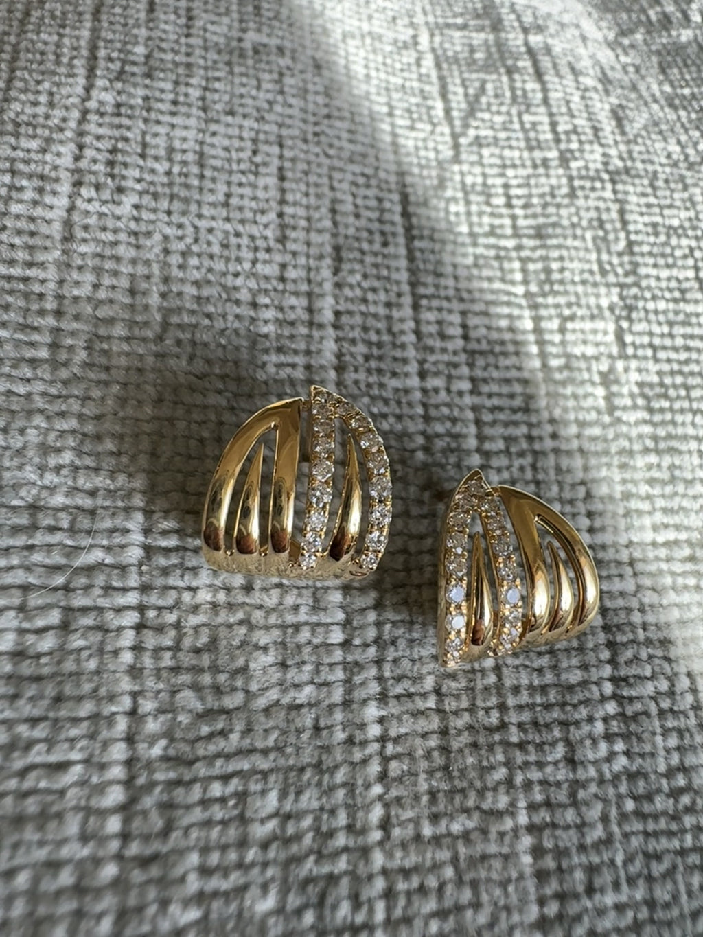 Multi‑row fan earrings in 18k yellow gold with diamond pavé.